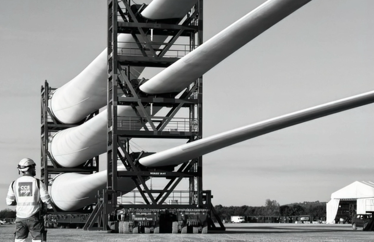 A wind turbine blade maintenance project for 70 turbines. CCS Ltd are providing Operators using SPMT to unload the vessels and transport the blade stacks to a maintenance area. The 82m blades weighing 60t each will be transported in a stack of 3 from the quay, maintained and returned to the vessel to be reinstalled at sea.