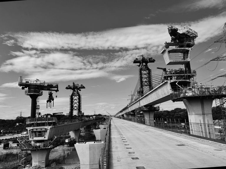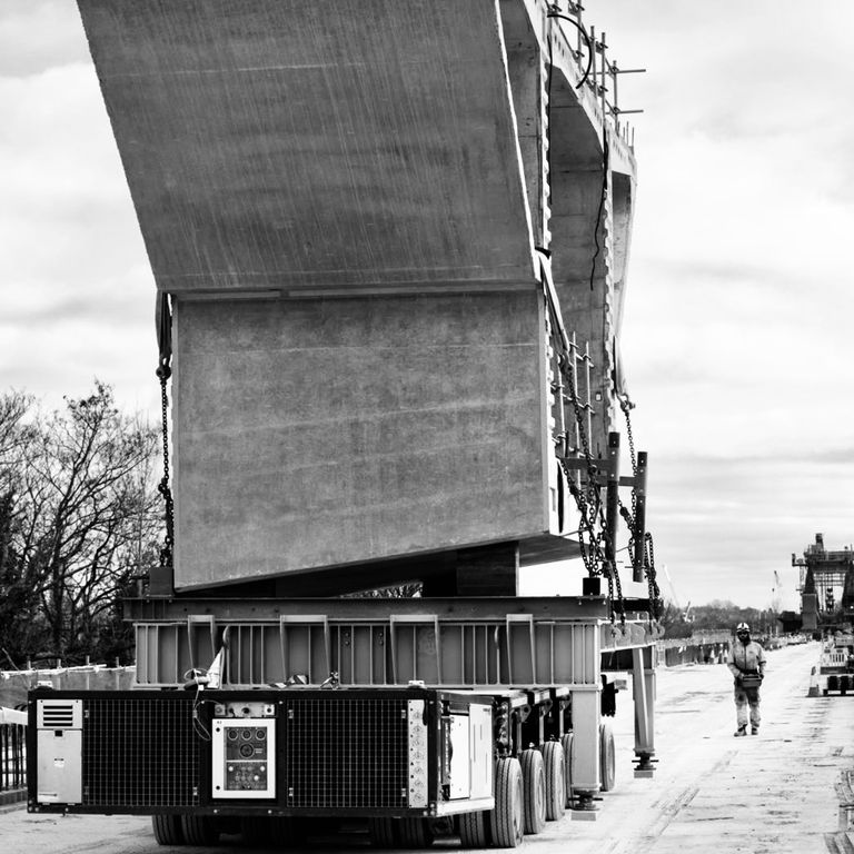 Our ongoing contract at Colne Valley Viaduct for HS2 with ALIGN involves the transport of precast concrete segments for the UKs longest rail bridge at 3.4km in length. The segments vary in size and weight from 80T to 150T and are transported using a 6 axle SPT along the viaduct to the the installation girder. Here it is lifted and installed using 'Dominique'. A match casting system is used to link each segment where it is then glued and tensioned into position between the piers. The viaduct will span various lakes and roads in the North London region of the Colne Valley National Park where it will meet the 16km tunnel system taking the HS2 line North.