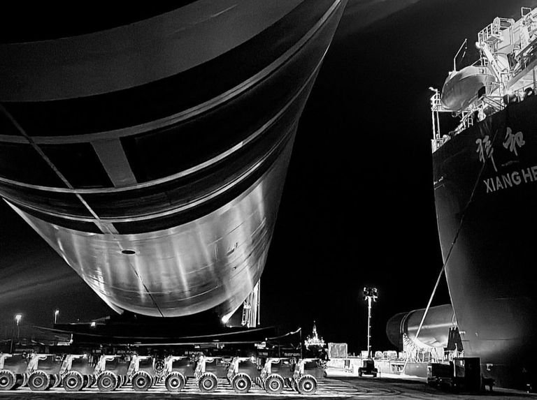 We are providing expertise and supervision to our Client for a full marshalling contract of XXL monopiles, the largest ever in the United Kingdom up to 2000te each. Conducting Load-in, Load-out and site move operations using 86 axle lines of SPMT. The Monopiles are arriving from China and Spain and to be installed at sea to create the foundations of the Moray West wind farm.